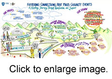 Exercise Target Red focused on the impact of being involved in and/or responding to a mass-casualty incident. These incidents are often traumatic with little advance warning, thus, there is limited opportunity to plan for immediate need or to communicate with family and friends. The existing research indicates the impact of this trauma can be reduced when first responders and support responders work together to offer Psychological First Aid during and immediately after the incident. For Exercise Target Red, researchers developed training and resources to support responders in these efforts. In doing so, the researchers and Expert Advisory Group members (convened for the purpose of bringing expertise and oversight for the exercise) became aware of the benefits for those involved in a Mass-Casualty Incident (MCI) to connect at a later time in order to receive additional information, emotional support, and/or to express gratitude and thanks.
